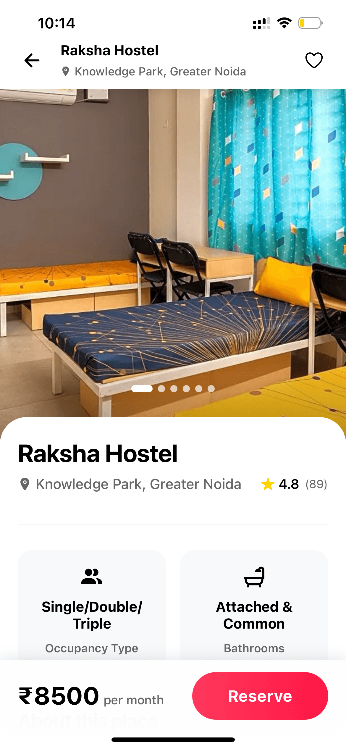 Loved the app! The swipe feature made it fun and easy to shortlist places. Booked my room within 2 days. Highly recommended for students new to Delhi NCR.